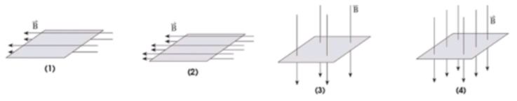 Câu 11: Hình vẽ nào dưới đây, từ thông gửi qua điện tích của khung dây dẫn có giá trị lớn nhất?