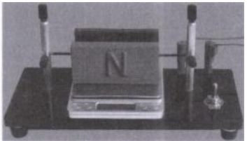 Một đoạn dây dẫn nằm ngang được giữ cố định ở vùng từ trường đều trong khoảng không gian giữa hai cực của nam châm. Nam châm này được đặt trên một cái cân (Hình 3.1). Phần nằm trong từ trường của đoạn dây dẫn có chiều dài là 1,0 cm. Khi không có dòng điện chạy trong đoạn dây, số chỉ của cân là 500,68 g. Khi có dòng điện cường độ 0,34 A chạy trong đoạn dây, số chỉ của cân là 500,12 g. Lấy g = 9,80 m/s². Trong các phát biểu sau đây, phát biểu nào là đúng, phát biểu nào là sai?