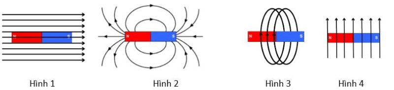 Câu 3: Hình ảnh nào sau đây mô tả đường sức từ của từ trường gây bởi nam châm thẳng?