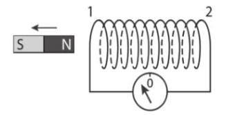 Câu 7: Ở thí nghiệm về hiện tượng cảm ứng điện từ như hình bên. Khi di chuyển thanh nam châm so với ống dây
