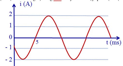 Câu 17. Hình bên là đồ thị biểu diễn sự phụ thuộc của cường độ dòng điện xoay chiều chạy qua một đoạn mạch vào thời gian t. Biểu thức cường độ dòng điện tức thời chạy qua đoạn mạch là