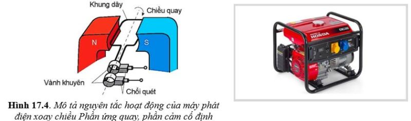 Câu 2. Một máy phát điện xoay chiều chạy bằng xăng có cấu tạo và nguyên lí hoạt động như các hình vẽ.
