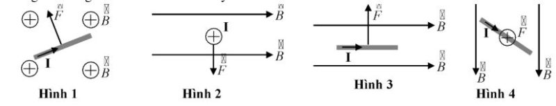 Câu 5. Hình nào sau đây biểu diễn không đúng vector lực từ tác dụng lên đoạn dây dẫn mang dòng điện đặt trong từ trường mô tả như hình dưới đây?