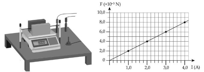 Câu 4. Một học sinh làm thí nghiệm đo cảm ứng từ B với bộ dụng cụ như ở hình vẽ. Chiều dài dây dẫn là 10 cm và thu được kết quả như đồ thị dưới đây. Giá trị trung bình của cảm ứng từ B đo được.