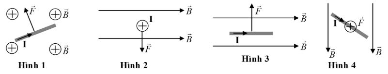 Câu 8. Hình nào sau đây biểu diễn không đúng vector lực từ tác dụng lên đoạn dây dẫn mang dòng điện đặt trong từ trường mô tả như hình dưới đây?