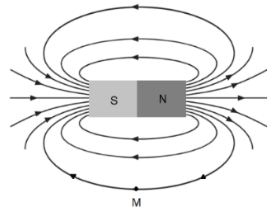Câu 18. Hình dưới đây mô tả các đường sức từ của một thanh nam châm vĩnh cửu. Nếu đặt một kim nam châm tại điểm M thì nó định hướng như thế nào?