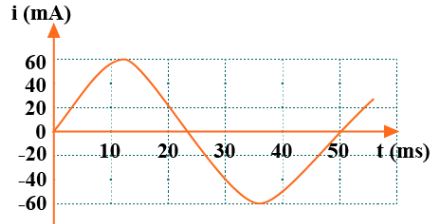 d) Khoảng thời gian giữa hai lần liên tiếp dòng điện đạt cùng một giá trị và cùng chiều là 50 ms.