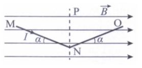 Câu 2. Ở Hình vẽ, biết: $I = 2,5$ A; $B = 0,02$ T; MN = NQ = 6,0 cm; $\alpha = 30°$. Trong các phát biểu sau đây, phát biểu nào là đúng, phát biểu nào là sai?