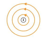 Câu 5. Một dây dẫn điện thẳng được đặt vuông góc với mặt phẳng như hình vẽ. Đường sức từ quay ngược chiều kim đồng hồ. Chiều của dòng điện là