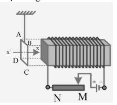 Câu 7. Một khung dây dẫn rất nhẹ được treo bằng sợi dây mềm, đường thẳng x’x trùng với trục của khung dây. Khung dây được đặt gần một nam châm điện, trục nam châm điện trùng với trục x’x. Khi cho con chạy của biến trở dịch chuyển từ M đến N thì