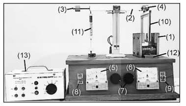 Câu 4. Trong giờ thực hành xác định độ lớn cảm ứng từ của nam châm điện chữ U bằng “cân dòng điện” một học sinh sử dụng thiết bị như Hình bên. Xét trạng thái ổn định với cân đòn nằm ngang cân bằng khi có dòng điện chạy trong khung dây và nam châm điện, góc hợp bởi mặt phẳng khung dây với các đường sức từ là $90^\circ$. Biết khung dây có 200 vòng, chiều dài đoạn dây dẫn nằm ngang trong từ trường đều là 8 cm. Ở một lần đo, học sinh xác định được độ lớn lực từ tác dụng lên khung dây là $F = 0,06 N$, dòng điện có cường độ $I = 0,2 A$ chạy qua khung. Độ lớn cảm ứng từ B của nam châm ở lần đo này bằng bao nhiêu Tesla (T)? (kết quả làm tròn đến chữ số hàng phần trăm)