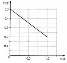 Câu 14: Một khung dây dẫn kín hình vuông có cạnh dài 10 cm gồm 400 vòng được đặt trong từ trường đều sao cho vectơ đơn vị pháp tuyến của mặt phẳng khung dây cùng phương cùng chiều với vectơ cảm ứng từ. Điện trở suất và tiết diện của dây kim loại có giá trị lần lượt là $2 \times 10^{-8} \Omega \cdot \text{m}$ và $0,4 \text{mm}^2$. Giá trị cảm ứng từ biến thiên theo thời gian như đồ thị trong hình vẽ. Công suất toả nhiệt sinh ra trong khung dây có giá trị bao nhiêu?