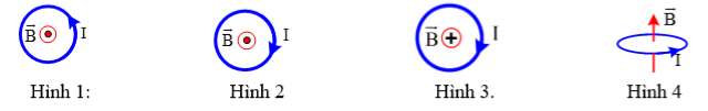 Câu 16: Trong các hình vẽ sau, hình vẽ nào biểu diễn sai hướng của véc tơ cảm ứng từ tại tâm vòng dây của dòng điện trong vòng dây tròn mang dòng điện?
