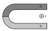 Câu 1. Một đoạn dây dẫn thẳng được đặt giữa hai cực của một nam châm chữ U như hình vẽ dưới đây. Biết dòng điện trong đoạn dây có chiều hướng từ ngoài vào trong phẳng hình vẽ. Lực từ tác dụng lên đoạn dây có chiều như thế nào?