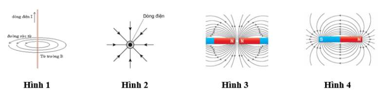 Câu 12: Trong các hình vẽ sau, hình vẽ nào biểu diễn không đúng hình dạng của các đường sức từ?