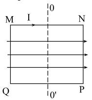 Câu 1: Để tạo ra dòng điện xoay chiều người ta cho một khung dây dẫn phẳng MNPQ gồm 50 vòng dây, mỗi vòng dây có diện tích 100 cm², quay đều với tốc độ 3000 vòng/phút quanh trục OO’ vuông góc với đường sức từ của từ trường đều có cảm ứng từ bằng 0,2 T như hình vẽ.