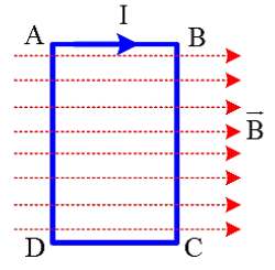 Câu 2: Cho một khung dây dẫn hình chữ nhật ABCD có cạnh BC = 20 cm, đặt trong một từ trường đều có các đường sức từ song song với mặt phẳng chứa khung dây như hình vẽ; dòng điện chạy qua dây dẫn có cường độ I = 4 A. Biết cảm ứng từ có độ lớn B = 0,04 T.