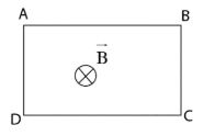 Câu 2: Cho một khung dây dẫn kín đồng chất, cứng, hình chữ nhật ABCD có diện tích S=0,04m². Biết khung dây có điện trở là $R = 0,5Ω$. Khung dây dẫn được đặt trong từ trường đều sao cho cảm ứng từ $\vec{B}$ vuông góc với mặt phẳng khung dây. Ban đầu, cảm ứng từ có độ lớn B= $0,9$ T. Cho độ lớn cảm ứng từ giảm đều về $0,3$ T trong khoảng thời gian $\Delta t = 0,02(s)$
