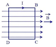 Câu 16. Đặt khung dây hình chữ nhật ABCD có dòng điện chạy qua sao cho các cạnh AB và CD song song với các đường sức từ. Kết luận nào sau đây là đúng?