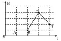 Câu 4. Đồ thị biểu diễn sự biến thiên của cảm ứng từ B theo thời gian của một từ trường như hình vẽ. Một khung dây dẫn đặt trong từ trường này sao cho mặt phẳng khung dây vuông góc với $\vec{B}$. Gọi $e_a, e_b, e_c$ là độ lớn của các suất điện động cảm ứng xuất hiện trong khung ứng với các đoạn AB, BC và CD. Xếp theo thứ tự giảm dần của các suất điện động này là
