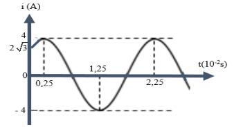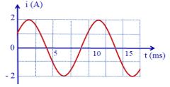 Câu 2. Hình bên là đồ thị biểu diễn sự phụ thuộc của cường độ dòng điện xoay chiều chạy qua một đoạn mạch trong thời gian t. Cường độ cực đại của dòng điện chạy qua đoạn mạch là bao nhiêu ampe (A) ?
