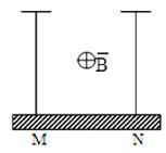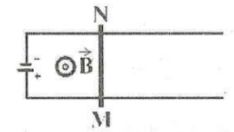 Câu 17. Thực hiện thí nghiệm xác định phương và chiều của lực từ tác dụng lên một đoạn dây dẫn như hình vẽ. Đoạn dây MN có dòng điện chạy qua theo chiều từ M đến N. Lực từ tác dụng lên đoạn MN có