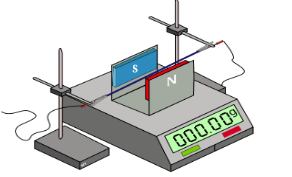 Câu 1. Một đoạn dây dẫn nằm ngang được giữ cố định trong vùng từ trường đều giữa hai cực của nam châm. Nam châm này được đặt trên một cái cân, phần nằm trong từ trường của đoạn dây dẫn có chiều dài là L =10 cm. Khi không có dòng điện chạy trong đoạn dây, số chỉ của cân là $m_1 = 500,68$ g. Khi có dòng điện cường độ I = 0,28 A chạy trong đoạn dây, số chỉ của cân là $m_2 = 500,12$ g. Lấy $g = 10 m/s^2$.