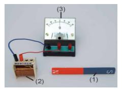 Câu 8. Một cuộn dây (2) có hai đầu nối vào điện kế (3). Khi cho một thanh nam châm (1) dịch chuyển lại cuộn dây (2) theo phương vuông góc với (2) thì thấy kim của điện kế (3) lệch đi. Đây là hiện tượng
