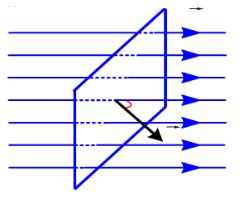 Câu 3: Một mặt có diện tích $S = 4,0 \text{dm}^2$ được đặt trong từ trường đều, vector pháp tuyến của mặt phẳng khung dây tạo với cảm ứng từ góc $\alpha = 30^\circ$ như hình vẽ. Từ thông qua mặt $S$ là $\phi = 12 \text{mWb}$. Độ lớn của cảm ứng từ là bao nhiêu tesla (kết quả được viết đến hai chữ số thập phân)?